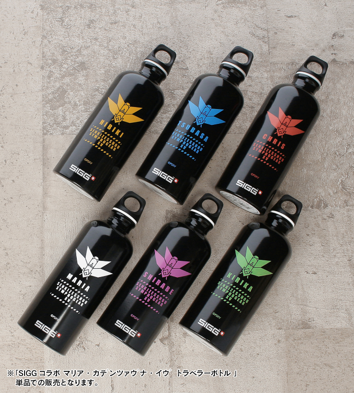 『戦姫絶唱シンフォギアXV』×「SIGG」のコラボレーションアイテム「SIGGコラボ マリア・カデンツァヴナ・イヴ トラベラーボトル」の登場です。 SIGG(シグ)は、ボトルの専門メーカーとして、スイスの自社工場で生産・管理を行い、丈夫で衛生面に優れた性能と品質により高い評価を得るブランドです。 マリア・カデンツァヴナ・イヴの名前や作品タイトル、装者のマイクユニットのモチーフなどをレイアウトしたデザインに仕上げました。 素材は良質なアルミプレートで軽量で丈夫、持ち運びに優れています。