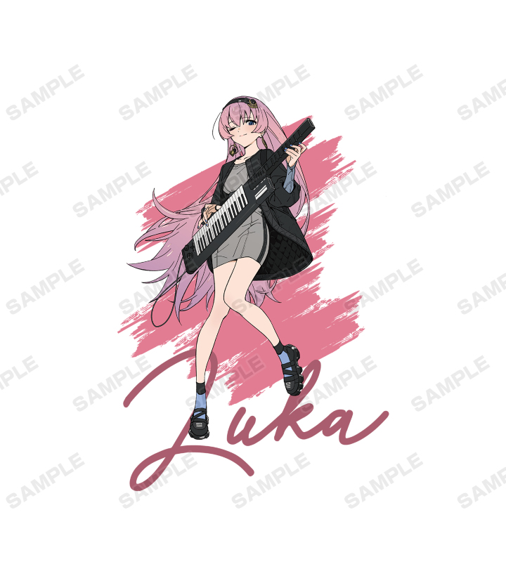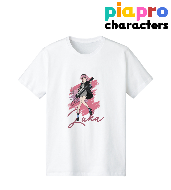 初音ミクたち『ピアプロキャラクターズ』×イラストレーター「tarou2」の描き下ろしアイテム「描き下ろしイラスト 巡音ルカ バンドver. Art by tarou2 Tシャツ」の登場です。