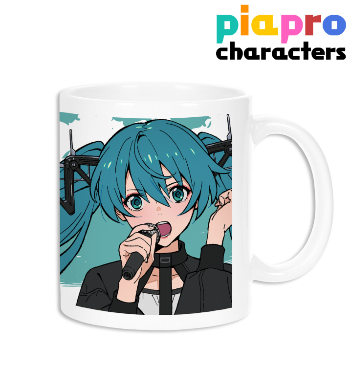 初音ミクたち『ピアプロキャラクターズ』×イラストレーター「tarou2」の描き下ろしアイテム「描き下ろしイラスト 初音ミク バンドver. Art by tarou2 マグカップ」の登場です。