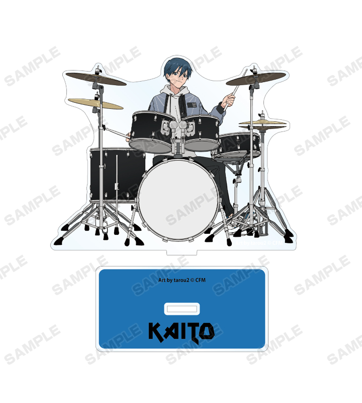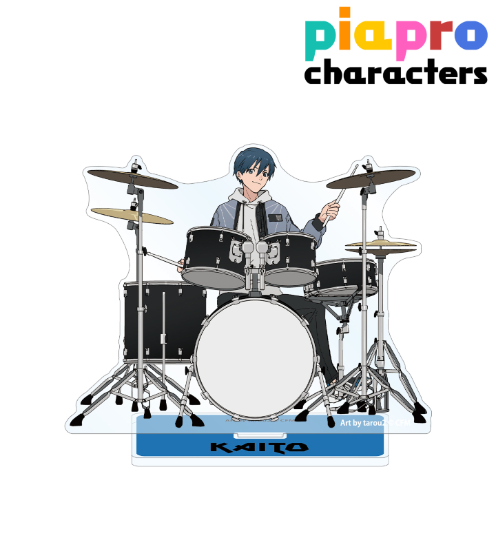 初音ミクたち『ピアプロキャラクターズ』×イラストレーター「tarou2」の描き下ろしアイテム「描き下ろしイラスト KAITO バンドver. Art by tarou2 BIGアクリルスタンド」の登場です。