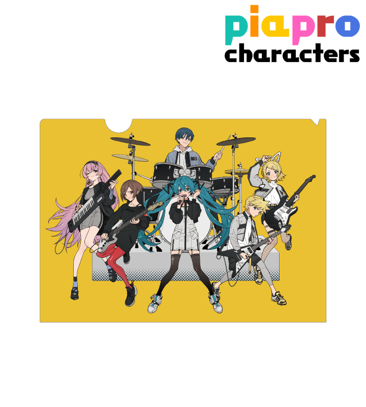初音ミクたち『ピアプロキャラクターズ』×イラストレーター「tarou2」の描き下ろしアイテム「描き下ろしイラスト 集合 バンドver. Art by tarou2 クリアファイル」の登場です。