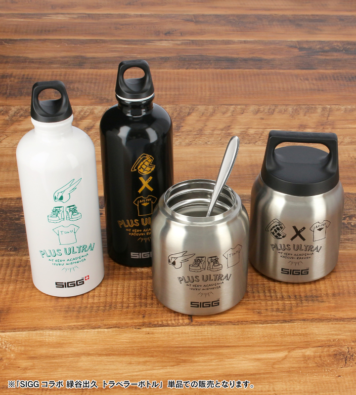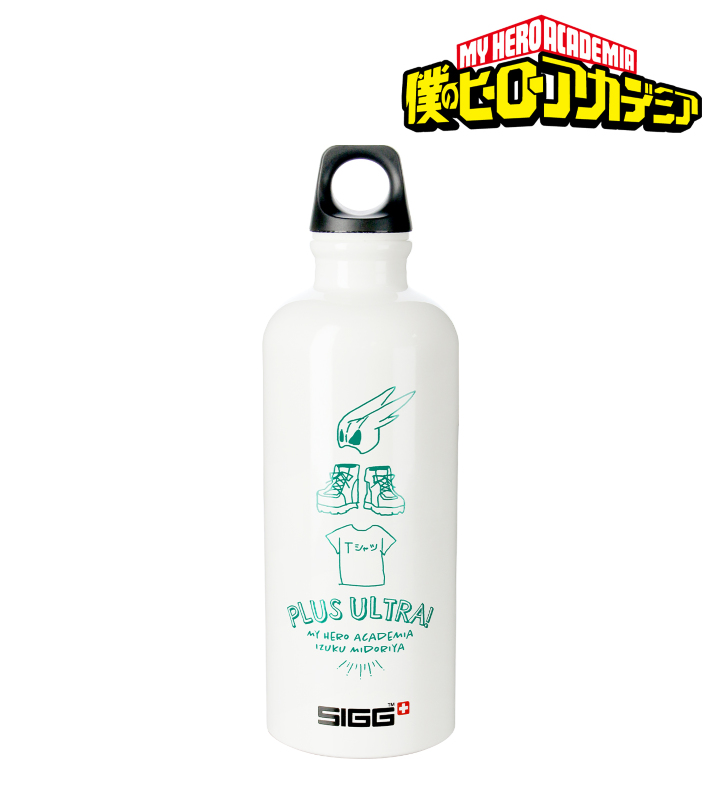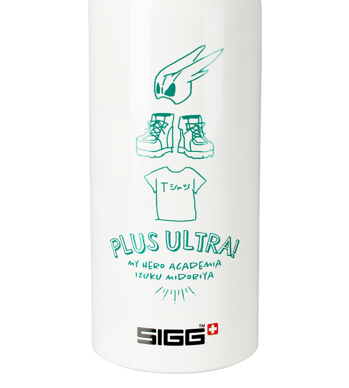 TVアニメ『僕のヒーローアカデミア』×「SIGG」のコラボレーションアイテム「SIGGコラボ 緑谷出久 トラベラーボトル」の登場です。 SIGG(シグ)は、ボトルの専門メーカーとして、スイスの自社工場で生産・管理を行い、丈夫で衛生面に優れた性能と品質により高い評価を得るブランドです。 緑谷出久をイメージしたモチーフやヒーロースーツの靴、私服のTシャツをレイアウトし、キャラクターからイメージしたカラーリングで仕上げました。 素材は良質なアルミプレートで軽量で丈夫、持ち運びに優れています。