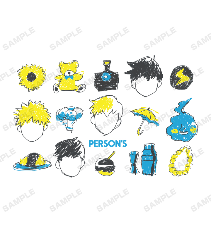 影山茂夫、霊幻新隆、エクボ、影山律、花沢輝気や作中に登場するアイテムのモチーフとPERSON'Sのアーカイブにそったテイストをかけ合わせてデザインしました。
