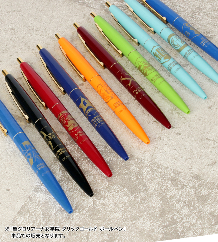 『ガールズ&パンツァー 最終章』から「BIC」のアイテム「聖グロリアーナ女学院 クリックゴールド ボールペン」の登場です。 クリックゴールドは、高級感のあるゴールドのクリップとリングが特長のノック式ボールペンです。 聖グロリアーナ女学院の校章を軸にレイアウトしたデザインに仕上げました。 コンパクトなサイズ感でボディが軽く、様々なシーンでご使用いただけるアイテムです。