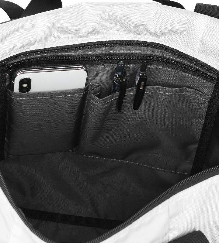メインの開閉部はダブルファスナーで、内外には豊富なポケットが搭載されています。