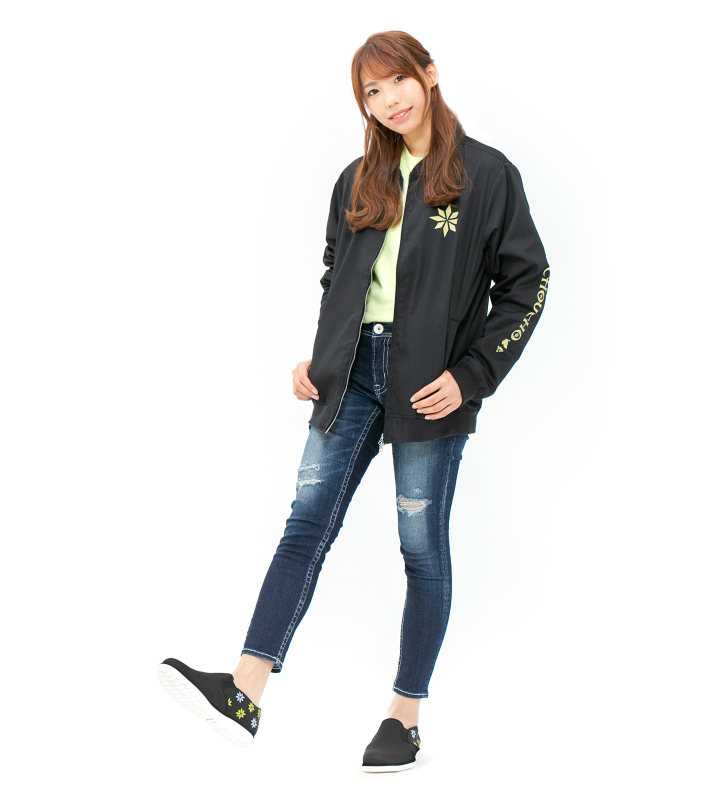 "コラボアパレルでTシャツなどはよくありますが、スタジアムジャケットとスリッポンって結構レアなアイテムでなかなかないので、ぜひ日常的に着ていただきたいです!