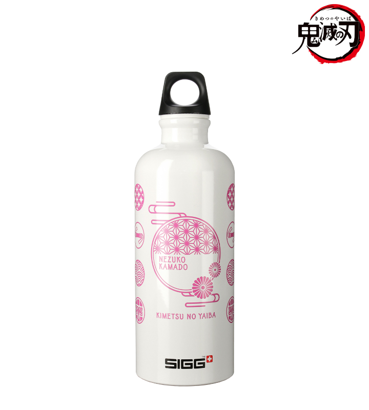 アニメ「鬼滅の刃」から「SIGG」のオリジナルアイテム「SIGG 竈門禰󠄀豆子 トラベラーボトル」の登場です。 SIGG(シグ)は、ボトルの専門メーカーとして、スイスの自社工場で生産・管理を行い、丈夫で衛生面に優れた性能と品質により高い評価を得るブランドです。 竈門禰󠄀豆子の着物の柄、口に咥えた竹筒、藤の花などを和風のモチーフと合わせてレイアウトしたデザインに仕上げています。 素材は良質なアルミプレートで軽量で丈夫、持ち運びに優れています。