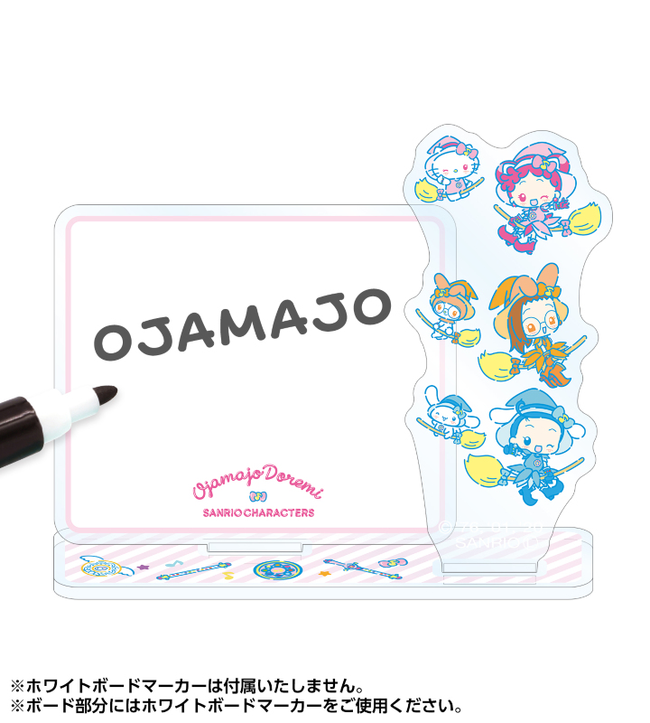 『おジャ魔女どれみ×サンリオキャラクターズ』のアイテム「アクリルメモスタンド」の登場です。 コラボレーションのデザインは、特徴のひとつである「かわいらしさ」を表現することにポイントをおき、キャラクターの新たな魅力を引き出しています。 ハローキティとどれみ、マイメロディとはづき、シナモロールとあいこ、魔法アイテム「ポロン」や変身アイテム「見習いタップ」などをレイアウトしたデザインに仕上げました。 メモボードにホワイトボードマーカーで書いたり消したりしてお使いいただけます。 ※ホワイトボードマーカーは付属いたしません。