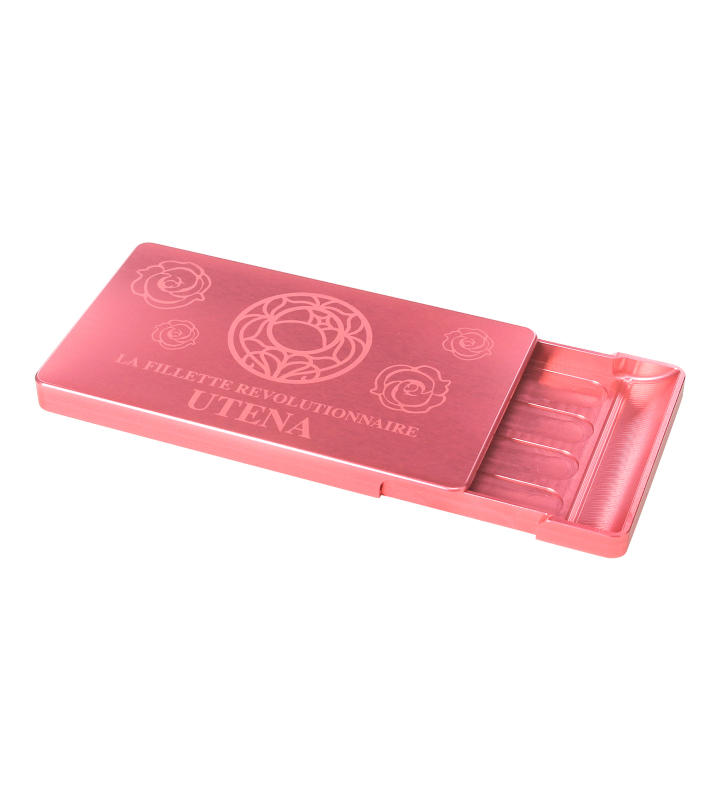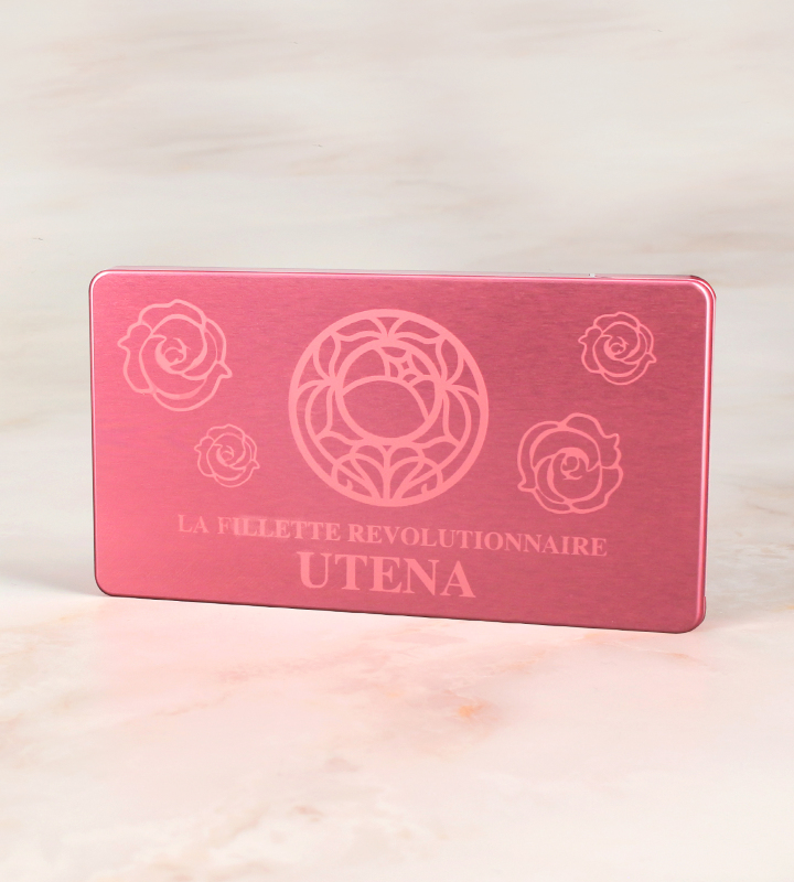 天上ウテナと姫宮アンシーのシルエットや薔薇の紋章を透かし加工で施したデザインに仕上げました。
