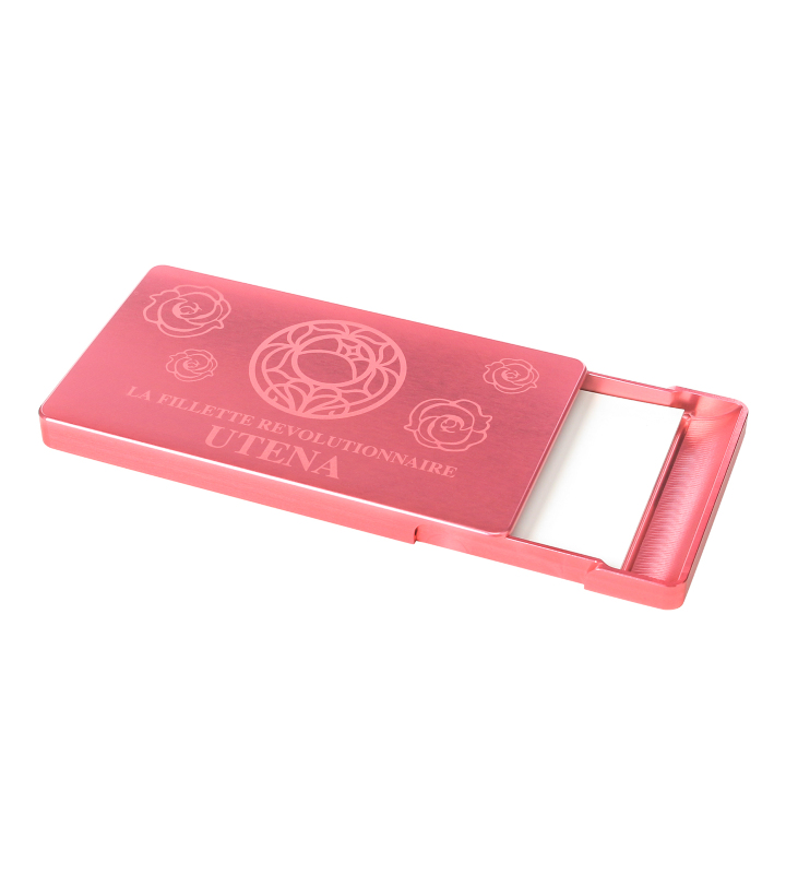 『少女革命ウテナ』×「GILD design」のコラボレーションアイテム「GILD design(ギルドデザイン) ジュラルミンカードケース」の登場です。 GILD designは「スマートフォンを本気で守る」をコンセプトに、航空機や自動車部品に使用される高強度ジュラルミンの無垢材から削り出したアルミケースを製作するブランドです。 天上ウテナと姫宮アンシーのシルエットや薔薇の紋章を透かし加工で施したデザインに仕上げました。 本体内部機構では、取り出し口の3次元加工によりカードが取り出しやすくなっています。 ジュラルミンから削り出して製作したカードケースで、ビジネスシーンにもマッチするアイテムです。