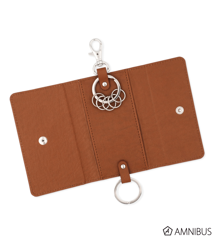 キーケースは、大きいキーリングが2つと小さいキーリングが5つあり、カード収納のできるポケットもついたコンパクトなアイテムです。