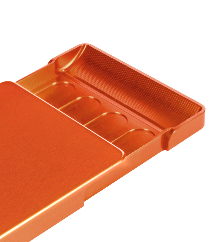 ジュラルミンから削り出して製作したカードケースで、ビジネスシーンにもマッチするアイテムです。