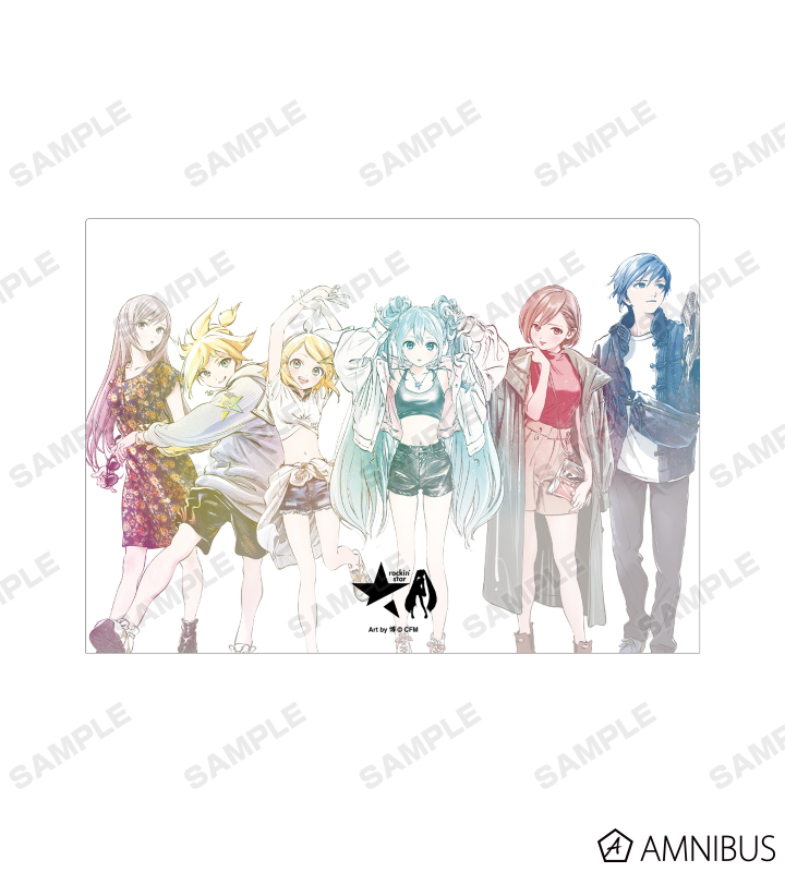 初音ミクたち『ピアプロキャラクターズ』×「rockin’star」×イラストレーター「博」のコラボレーションアイテム「rockin'starコラボ 描き下ろしイラスト 集合 Art by 博 クリアファイル」の登場です。