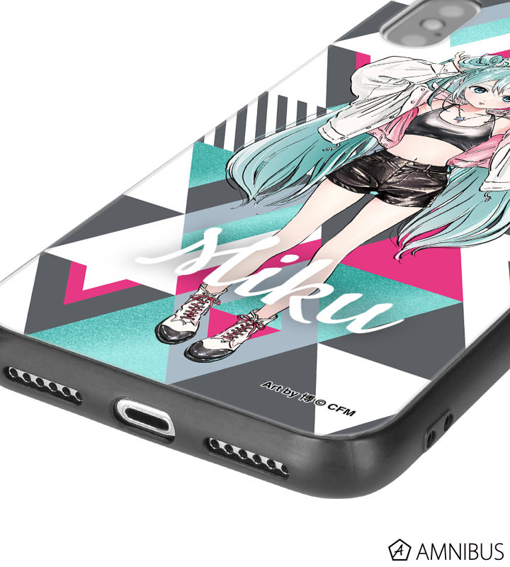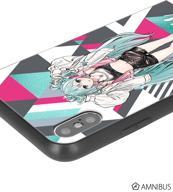 rockin'starコラボ 描き下ろしイラスト 初音ミク Art by 博 スクエア強化ガラス箔押しiPhoneケース