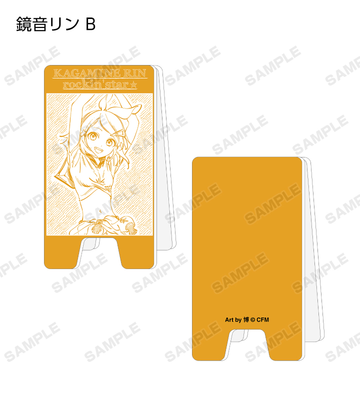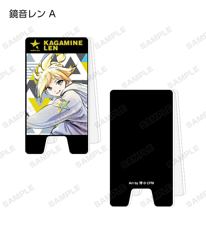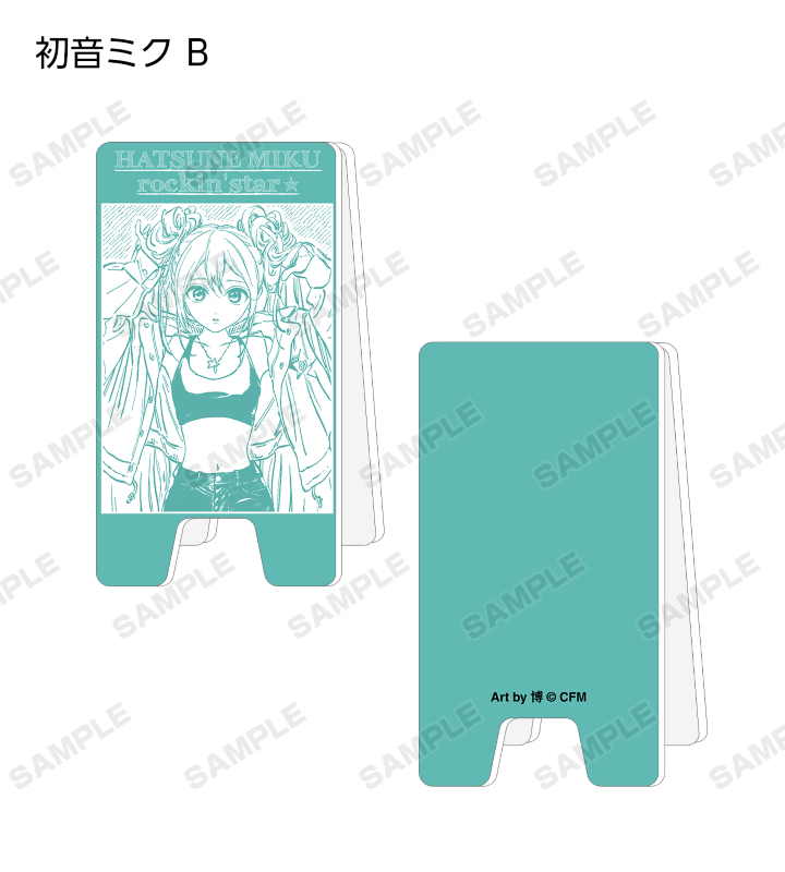 初音ミクたち『ピアプロキャラクターズ』×「rockin’star」×イラストレーター「博」のコラボレーションアイテム「rockin'starコラボ 描き下ろしイラスト Art by 博 トレーディングアクリル立て看板風メモスタンド」の登場です。 rockin’starは、「ROCKとキャラクターのコラボレーション」をテーマにしたブランドで、ROCKファンにもキャラクターファンにも届くデザインとメッセージを提案するブランドとして、2013年ロッキング・オンから生まれました。 博先生は、漫画「明日(あけび)ちゃんのセーラー服」や小説「スーパーカブ」挿画、他完結作「ゆめくり」「アクアリウム」等でご活躍中の漫画家です。 AMNIBUS STOREで開催された「rockin’star × 初音ミク POP UP SHOP in AMNIBUS STORE/MAGNET by SHIBUYA109」描き下ろしイラストの初音ミク、鏡音リン、鏡音レン、巡音ルカ、MEIKO、KAITOをメインにデザインしました。 クリップが内側に付いた立て看板風のスタンドで、メモなどを挟んでお使いいただけます。