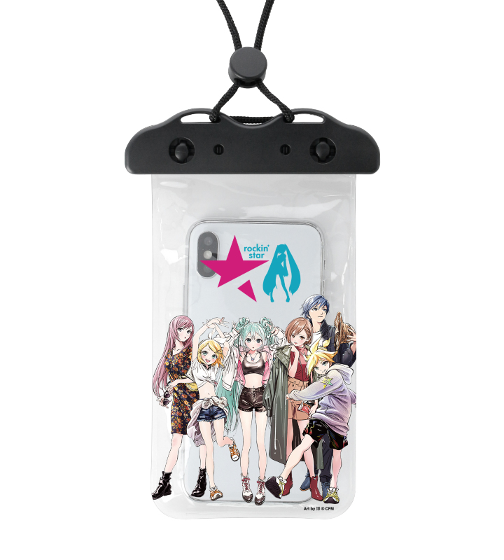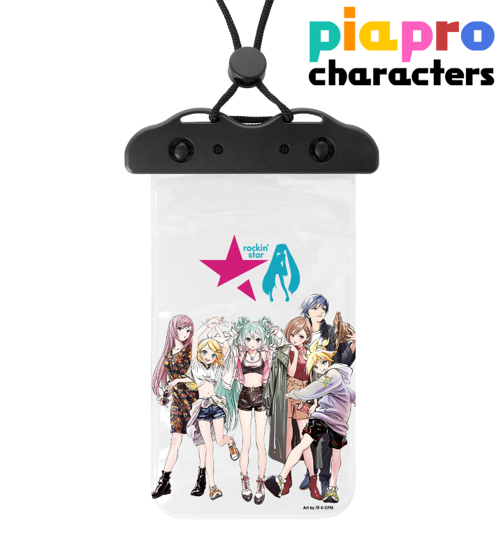 初音ミクたち『ピアプロキャラクターズ』×「rockin’star」×イラストレーター「博」のコラボレーションアイテム「rockin'starコラボ 描き下ろしイラスト 集合 Art by 博 防水マルチケース」の登場です。