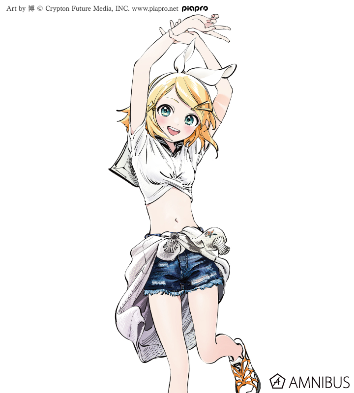 初音ミクたち『ピアプロキャラクターズ』×「rockin’star」×イラストレーター「博」のコラボレーションアイテム「rockin'starコラボ 描き下ろしイラスト 鏡音リン Art by 博 ワンポイントロゴジップパーカー」の登場です。