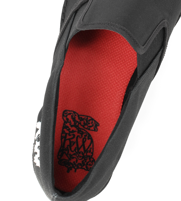 中敷きの色は、脱いだ時に印象の違いを楽しめるよう赤でかっこよくしていただきました!"