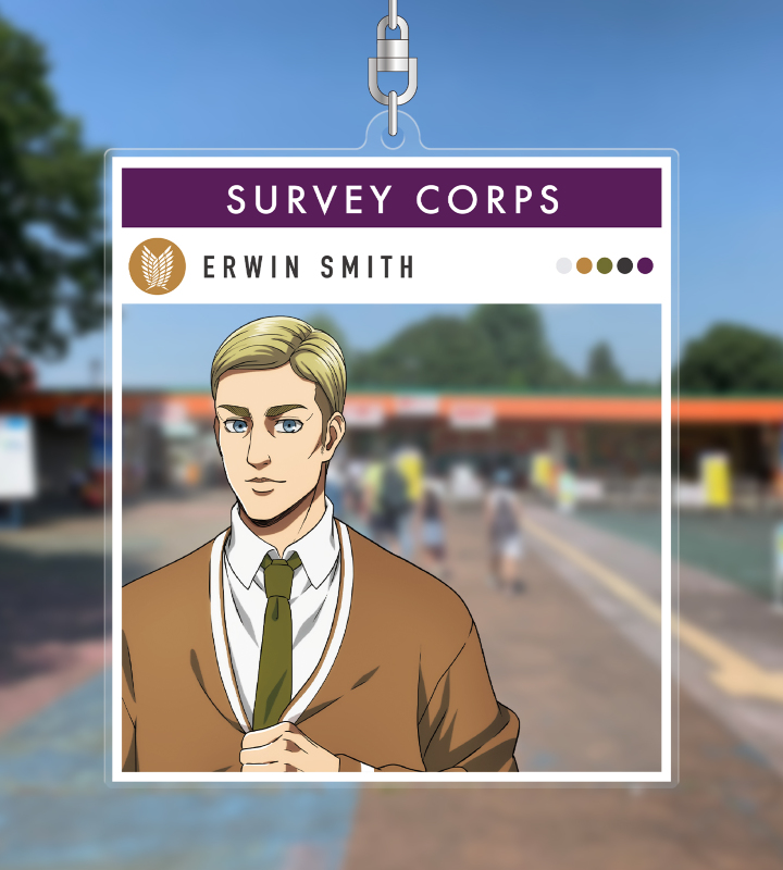 東武動物公園で開催された「進撃の巨人×東武動物公園」描き下ろしイラストのエルヴィンをメインにデザインした、BIGなアクリルキーホルダーに仕上げました。