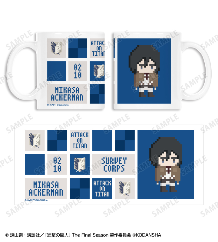 『TVアニメ『進撃の巨人』』と「ワンナイト人狼」のコラボレーションアイテム「ミカサ マグカップ(ワンナイト人狼コラボドット絵ver.)」の登場です。