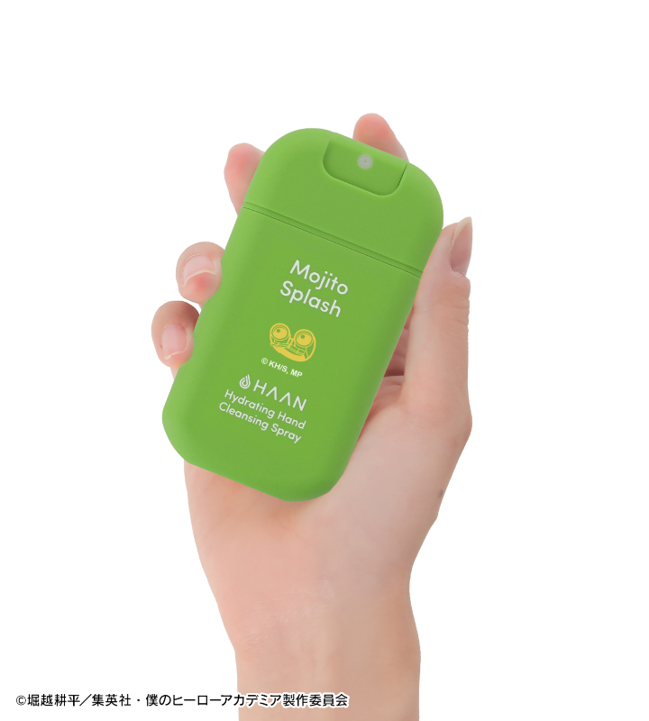 TVアニメ『僕のヒーローアカデミア』×「HAAN」のコラボレーションアイテム「HAAN コラボ 蛙吹梅雨 ハンドクレンジングスプレー」の登場です。