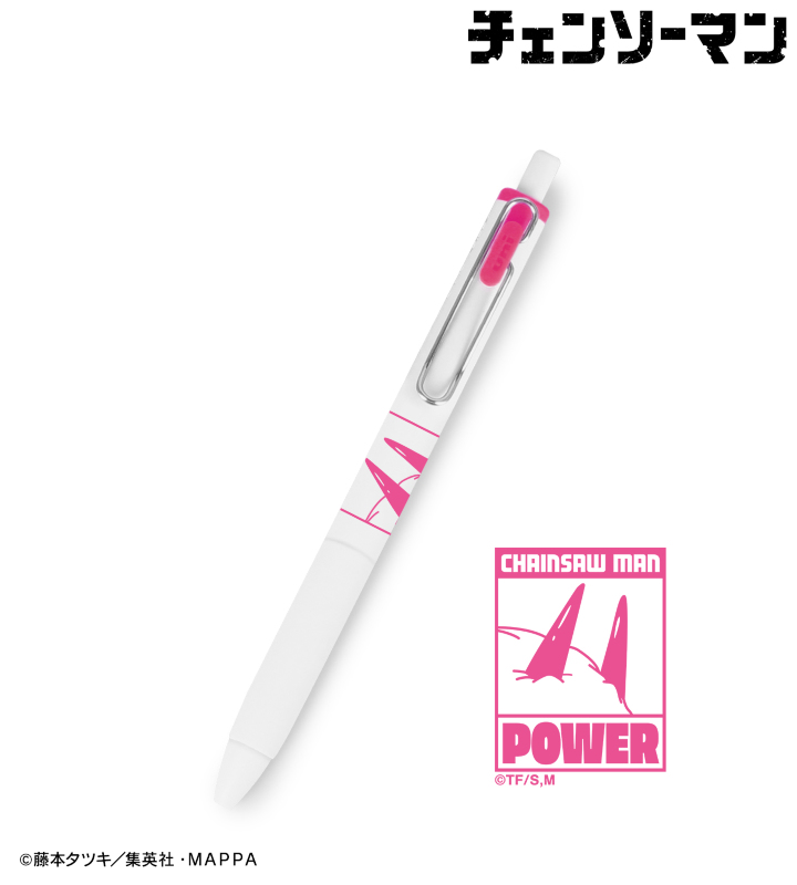 TVアニメ『チェンソーマン』×「三菱鉛筆/ユニボールワン」のコラボレーションアイテム「パワー ユニボール ワン ゲルインクボールペン」の登場です。
