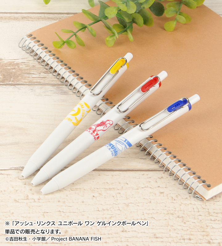 TVアニメ『BANANA FISH』×「三菱鉛筆/ユニボールワン」のコラボレーションアイテム「アッシュ・リンクス ユニボール ワン ゲルインクボールペン」の登場です。