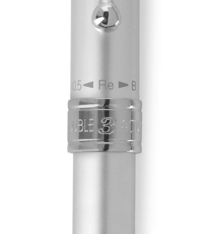 本体内部の機構には切り替えもスピーディな回転式メカを採用しており、回転繰り出し式の油性ボールペン2色(赤・黒 0.7mm)と、回転繰り出し&ノック(キャップスライド)式のシャープペンシル0.5mmが一体となった多機能筆記具です。