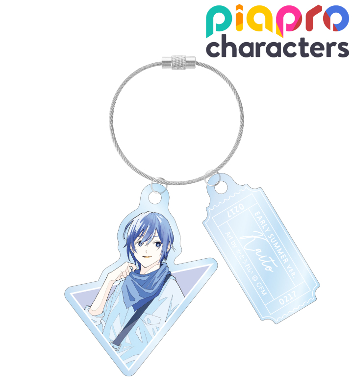 初音ミクたち『ピアプロキャラクターズ』×「かとうれい」のコラボレーションアイテム「描き下ろしイラスト KAITO 初夏のお出かけver. Art by かとうれい 2連ワイヤーアクリルキーホルダー」の登場です。