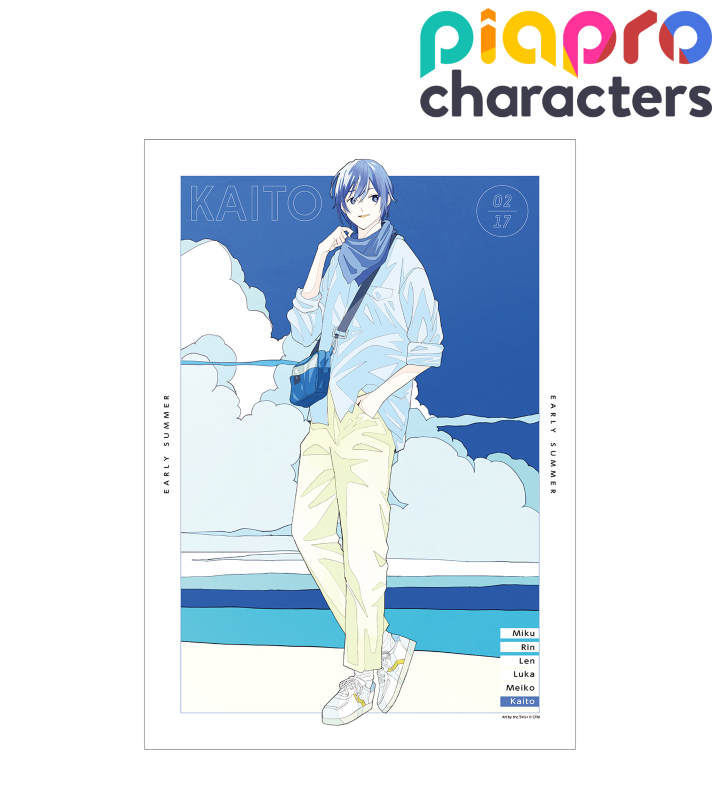 初音ミクたち『ピアプロキャラクターズ』×「かとうれい」のコラボレーションアイテム「描き下ろしイラスト KAITO 初夏のお出かけver. Art by かとうれい A3マット加工ポスター」の登場です。