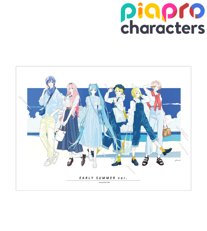 初音ミクたち『ピアプロキャラクターズ』×「かとうれい」のコラボレーションアイテム「描き下ろしイラスト 集合 初夏のお出かけver. Art by かとうれい A3マット加工ポスター」の登場です。