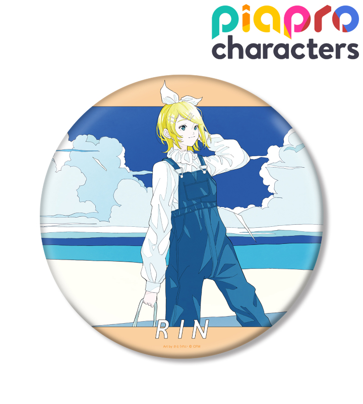 初音ミクたち『ピアプロキャラクターズ』×「かとうれい」のコラボレーションアイテム「描き下ろしイラスト 鏡音リン 初夏のお出かけver. Art by かとうれい BIG缶バッジ」の登場です。