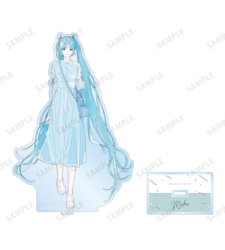 初音ミクたち『ピアプロキャラクターズ』×「かとうれい」のコラボレーションアイテム「描き下ろしイラスト 初音ミク 初夏のお出かけver. Art by かとうれい BIGアクリルスタンド」の登場です。