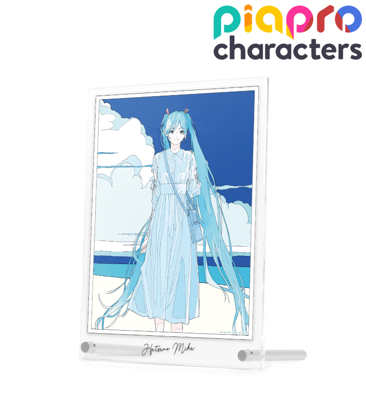 初音ミクたち『ピアプロキャラクターズ』×「かとうれい」のコラボレーションアイテム「描き下ろしイラスト 初音ミク 初夏のお出かけver. Art by かとうれい A5アクリルパネル」の登場です。