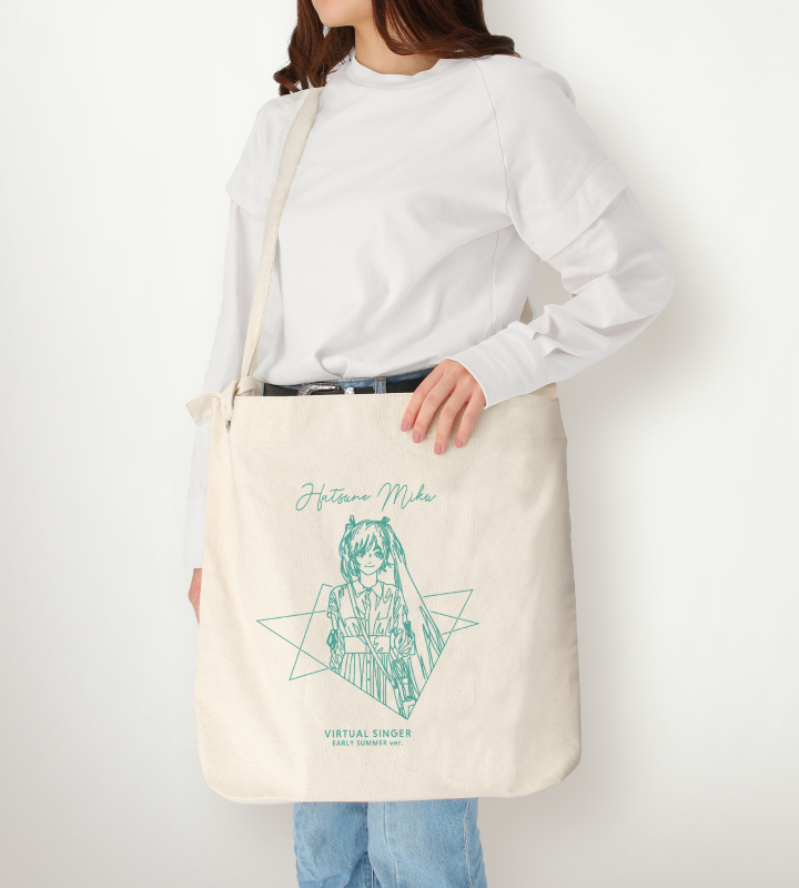 初音ミクたち『ピアプロキャラクターズ』×「かとうれい」のコラボレーションアイテム「描き下ろしイラスト 初音ミク 初夏のお出かけver. Art by かとうれい クラフトリングショルダーバッグ」の登場です。