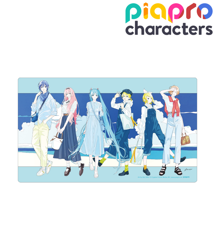 初音ミクたち『ピアプロキャラクターズ』×「かとうれい」のコラボレーションアイテム「描き下ろしイラスト 集合 初夏のお出かけver. Art by かとうれい プレイマット」の登場です。