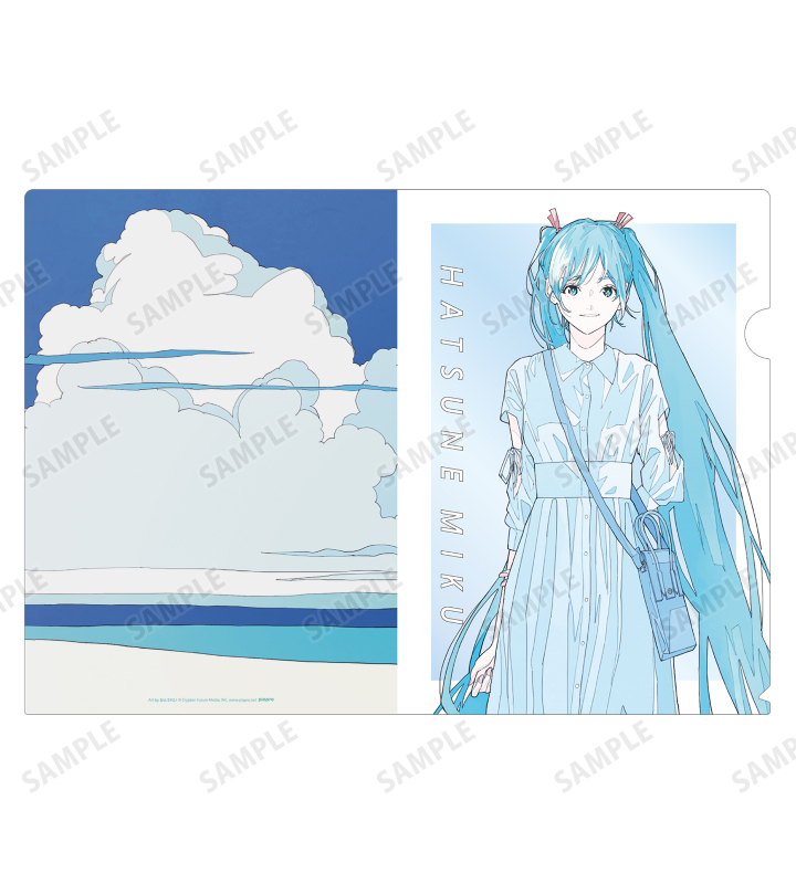 初音ミクたち『ピアプロキャラクターズ』×「かとうれい」のコラボレーションアイテム「描き下ろしイラスト 初音ミク 初夏のお出かけver. Art by かとうれい クリアファイル」の登場です。