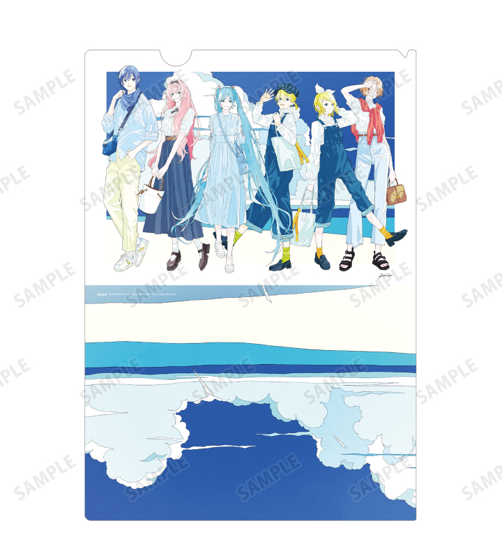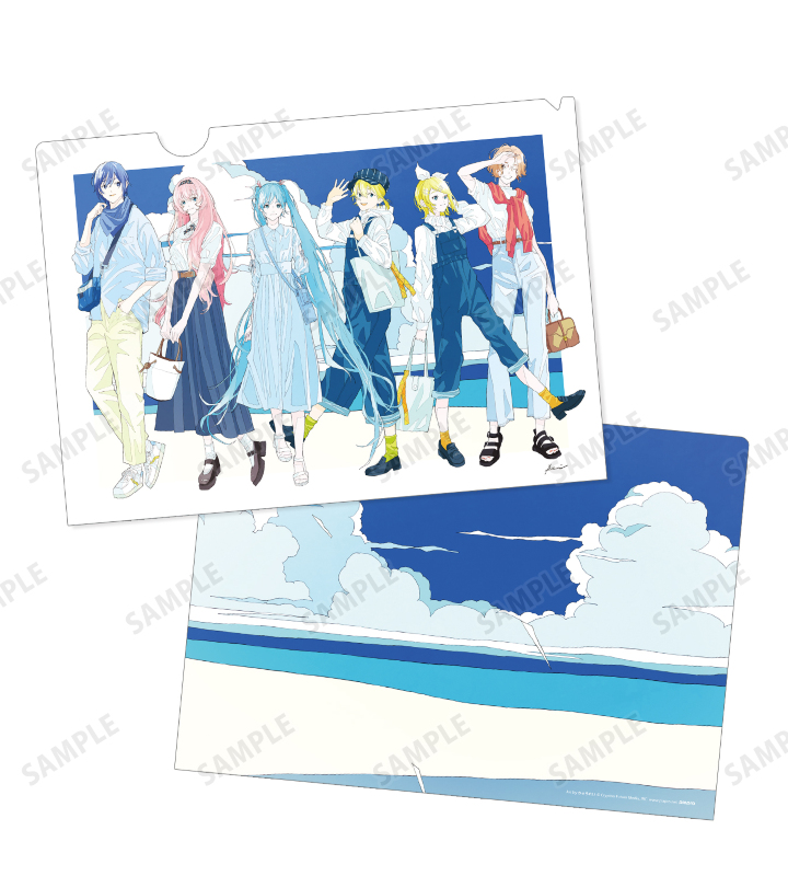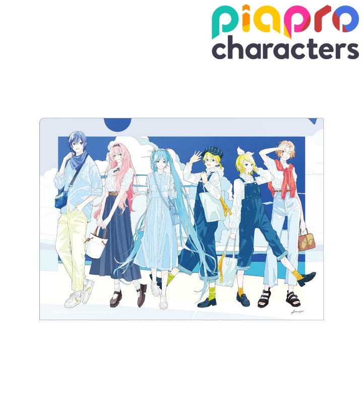 初音ミクたち『ピアプロキャラクターズ』×「かとうれい」のコラボレーションアイテム「描き下ろしイラスト 集合 初夏のお出かけver. Art by かとうれい クリアファイル」の登場です。