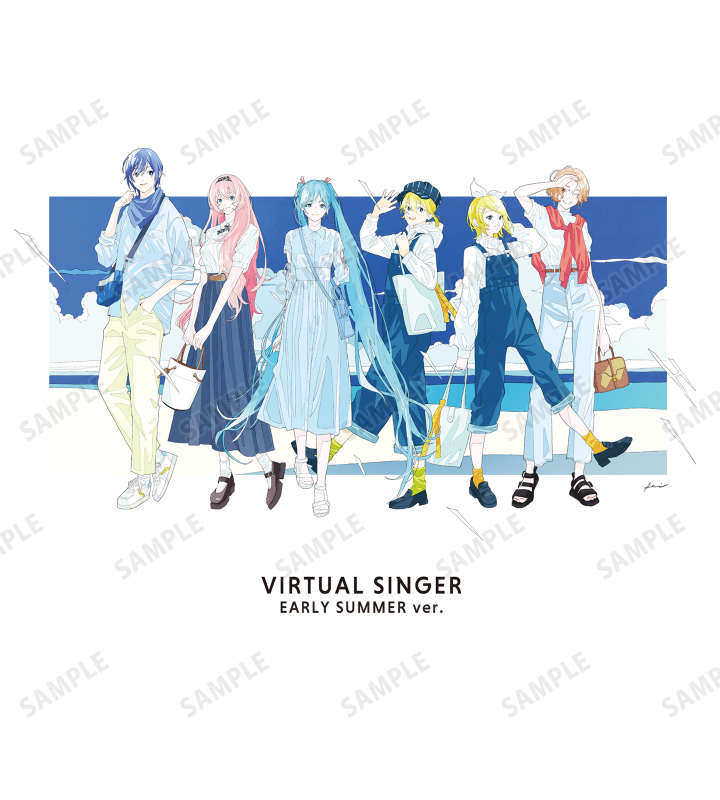 初音ミクたち『ピアプロキャラクターズ』×「かとうれい」のコラボレーションアイテム「描き下ろしイラスト 集合 初夏のお出かけver. Art by かとうれい Tシャツ」の登場です。