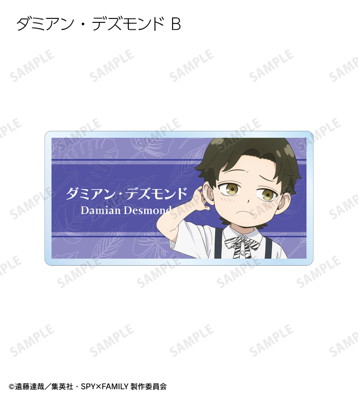 ロイド・フォージャー、アーニャ・フォージャー、ヨル・フォージャー、ボンド・フォージャー、ダミアン・デズモンド、ベッキー・ブラックベルの描き下ろしイラストをアクリルネームプレートに仕上げました。