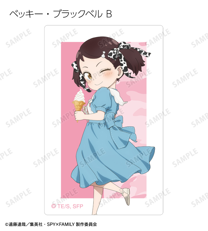 ロイド・フォージャー、アーニャ・フォージャー、ヨル・フォージャー、ボンド・フォージャー、ダミアン・デズモンド、ベッキー・ブラックベルの描き下ろしイラストをカードステッカーに仕上げました。