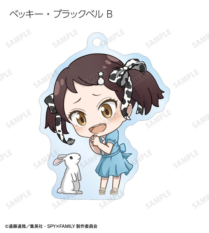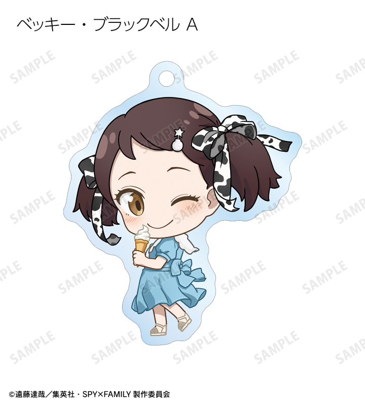 ロイド・フォージャー、アーニャ・フォージャー、ヨル・フォージャー、ボンド・フォージャー、ダミアン・デズモンド、ベッキー・ブラックベルの描き起こしちびキャライラストをアクリルキーホルダーに仕上げました。