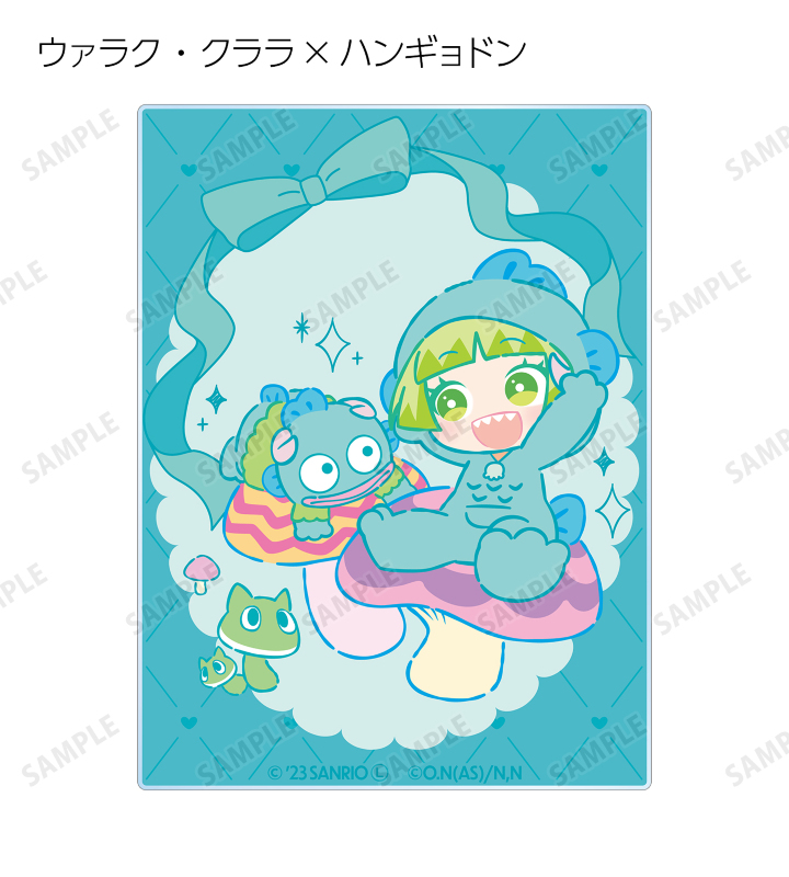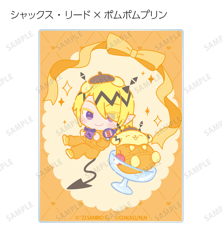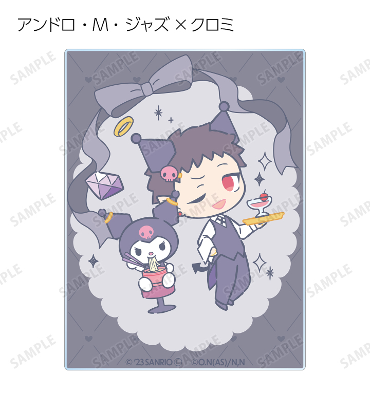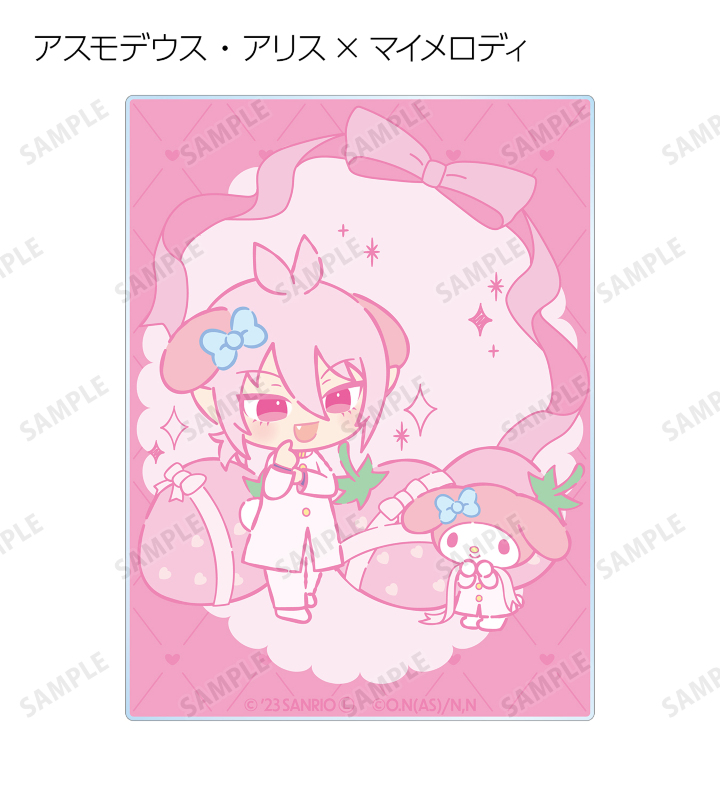 鈴木入間 ×シナモロール、アスモデウス・アリス×マイメロディ、ウァラク・クララ×ハンギョドン、アンドロ・M・ジャズ×クロミ、シャックス・リード×ポムポムプリン、オペラ×ハローキティ、ナベリウス・カルエゴ×バッドばつ丸をアクリルカードに仕上げました。