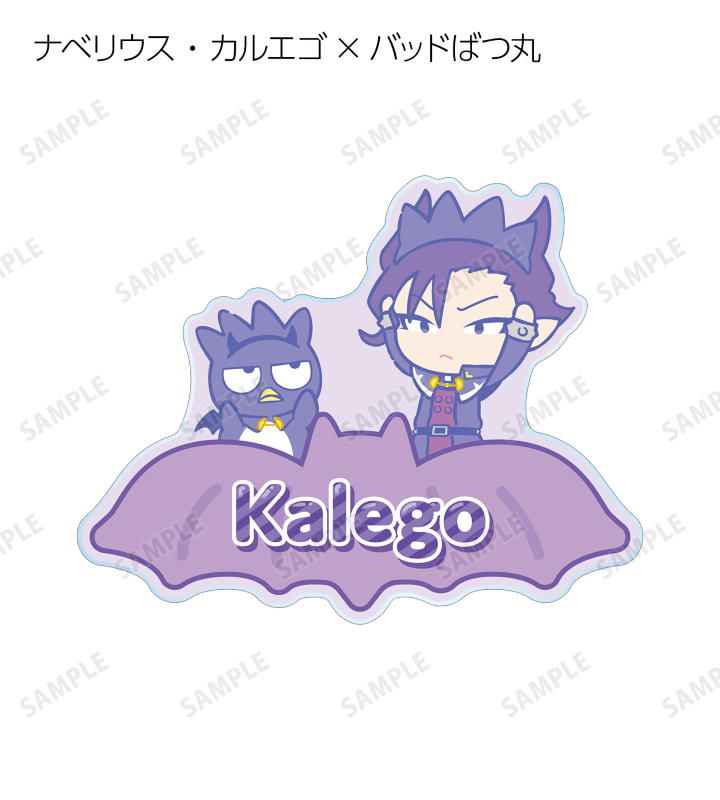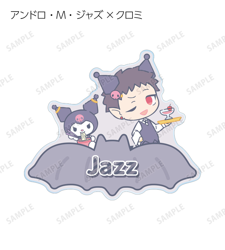 鈴木入間 ×シナモロール、アスモデウス・アリス×マイメロディ、ウァラク・クララ×ハンギョドン、アンドロ・M・ジャズ×クロミ、シャックス・リード×ポムポムプリン、オペラ×ハローキティ、ナベリウス・カルエゴ×バッドばつ丸をアクリルネームプレートに仕上げました。