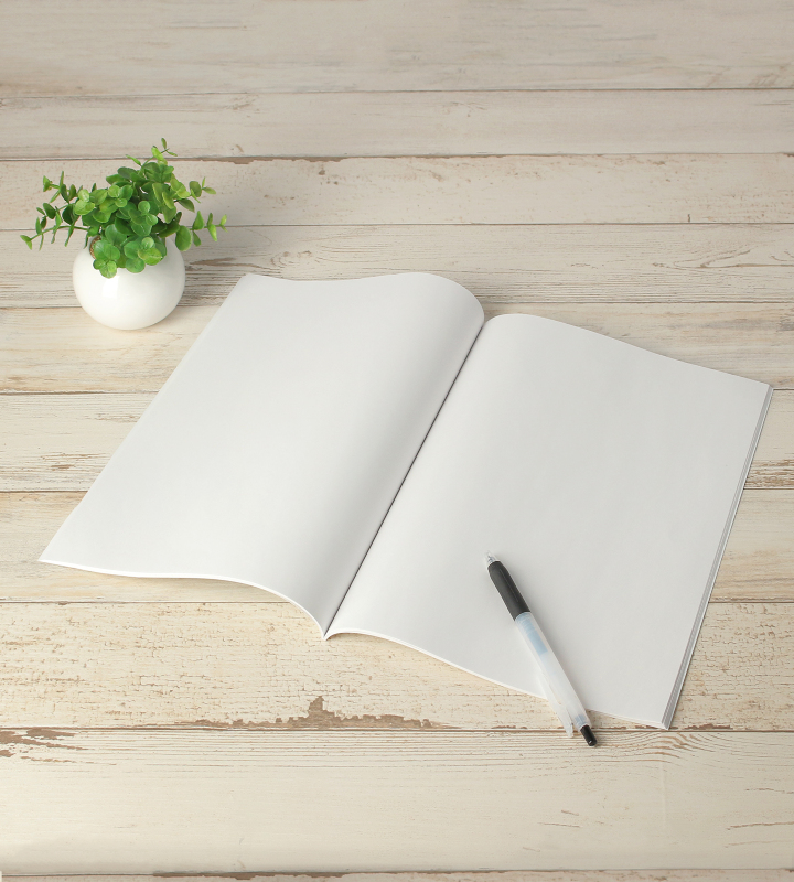 幅広い用途に使用できる無地のA4サイズのノートです。