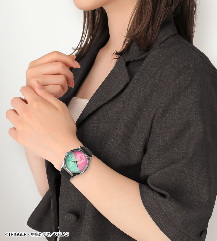 リオ・フォーティアをイメージして、文字盤にはピンクと青緑色、バンド表には黒、バンド裏には青緑色を配色し、時計全体でリオ・フォーティアを彷彿とさせるカラーリングに仕上げました。