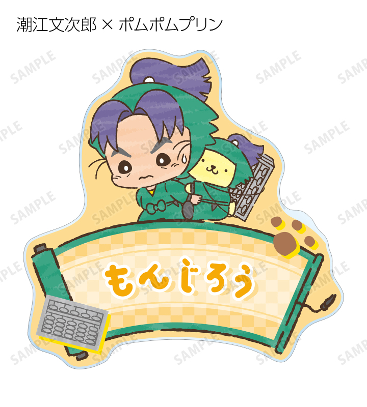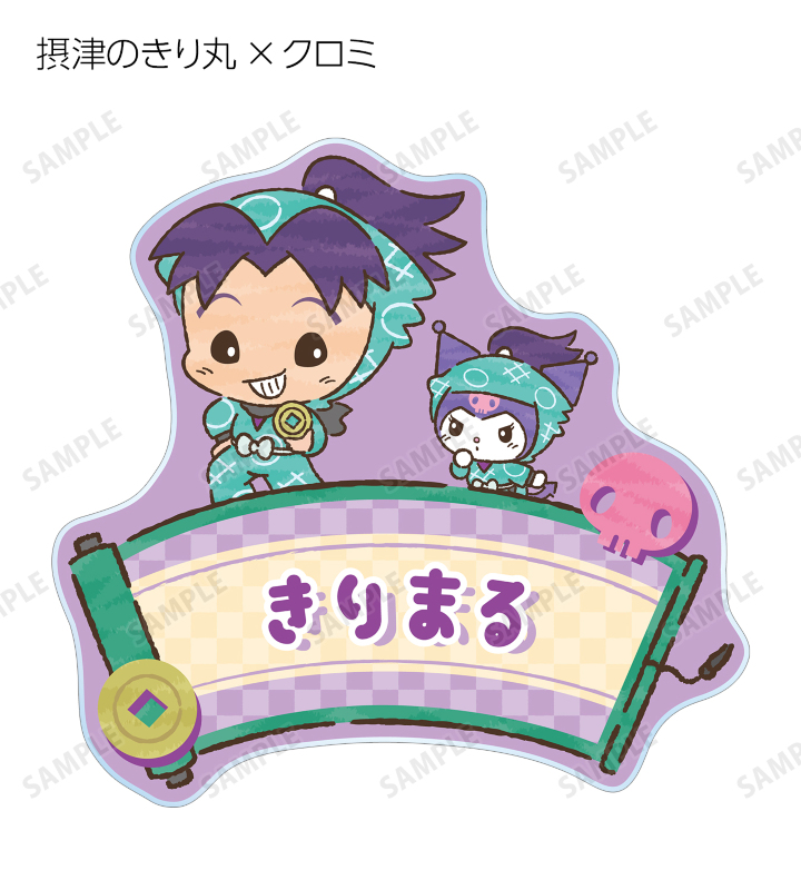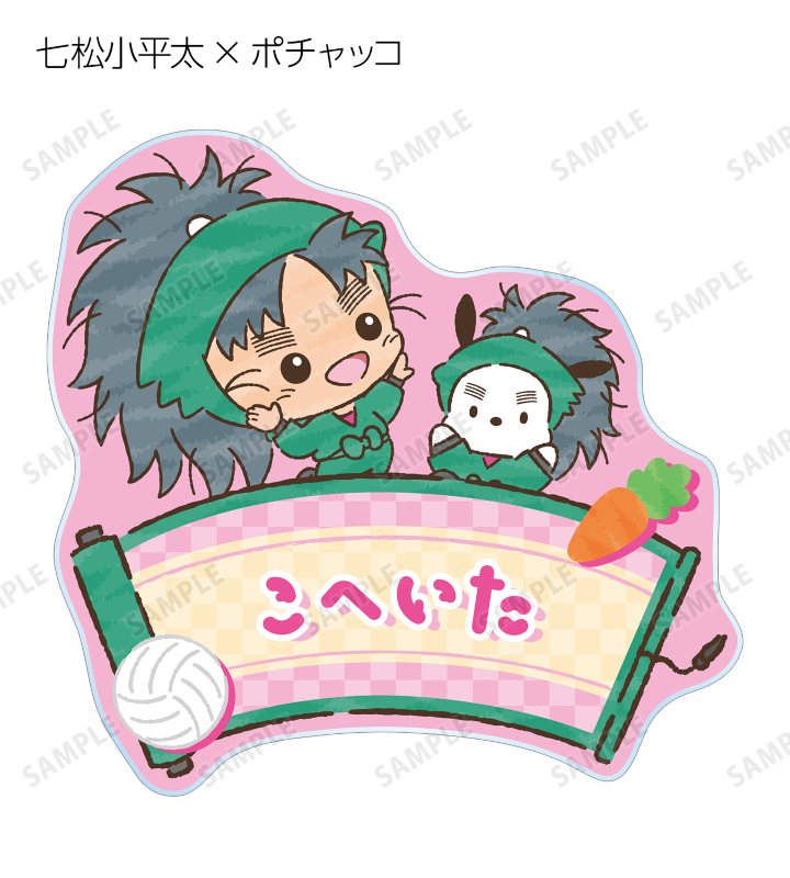 猪名寺乱太郎×ハローキティ、摂津のきり丸×クロミ、福富しんべヱ×タキシードサム、潮江文次郎×ポムポムプリン、立花仙蔵×シナモロール、中在家長次×バッドばつ丸、七松小平太×ポチャッコ、善法寺伊作×けろけろけろっぴ、食満留三郎×ハンギョドンをアクリルネームプレートに仕上げました。