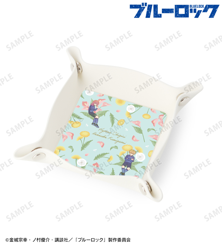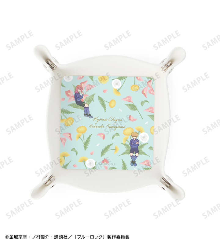 國神 錬介、千切 豹馬のイラストと各キャラクターをイメージした花をボタニカルデザインに落とし込んで繊細なタッチで新たに描き起こし、PUレザーマルチトレーに仕上げました。