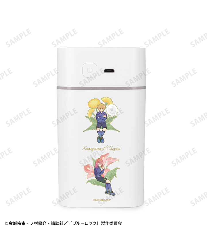 潔 世一、蜂楽 廻、國神 錬介、千切 豹馬のイラストと各キャラクターをイメージした花をボタニカルデザインに落とし込んで繊細なタッチで新たに描き起こし、卓上加湿器に仕上げました。