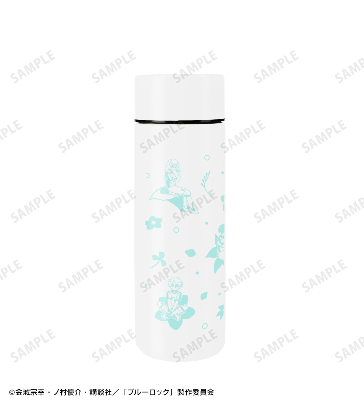 潔 世一、蜂楽 廻、國神 錬介、千切 豹馬、糸師 凛、凪 誠士郎、御影 玲王のイラストと各キャラクターをイメージした花をボタニカルデザインに落とし込んで繊細なタッチで新たに描き起こし、サーモボトルに仕上げました。